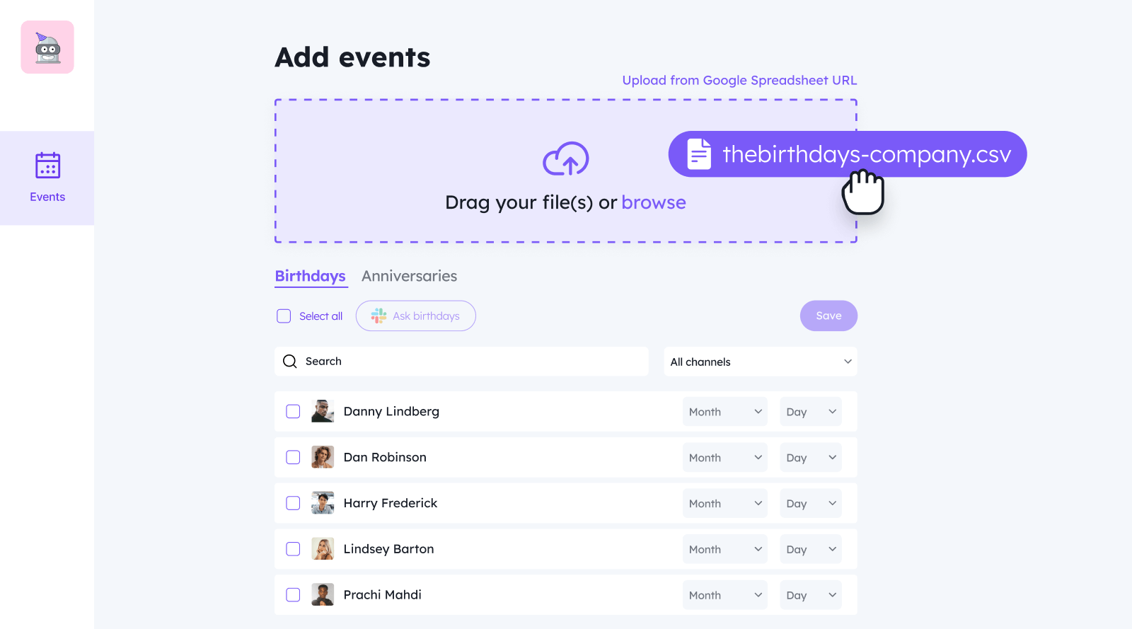 The Web App introduces an intuitive import flow that lets you bring team dates into BirthdayBot in minutes, not days.