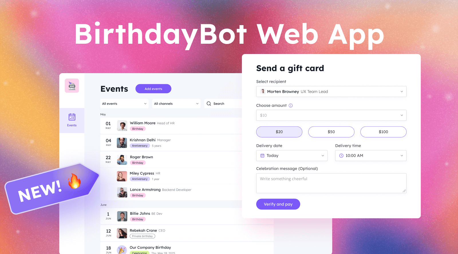As teams grow, go remote, and span multiple countries, coordinating celebrations inside Slack can quickly become messy.