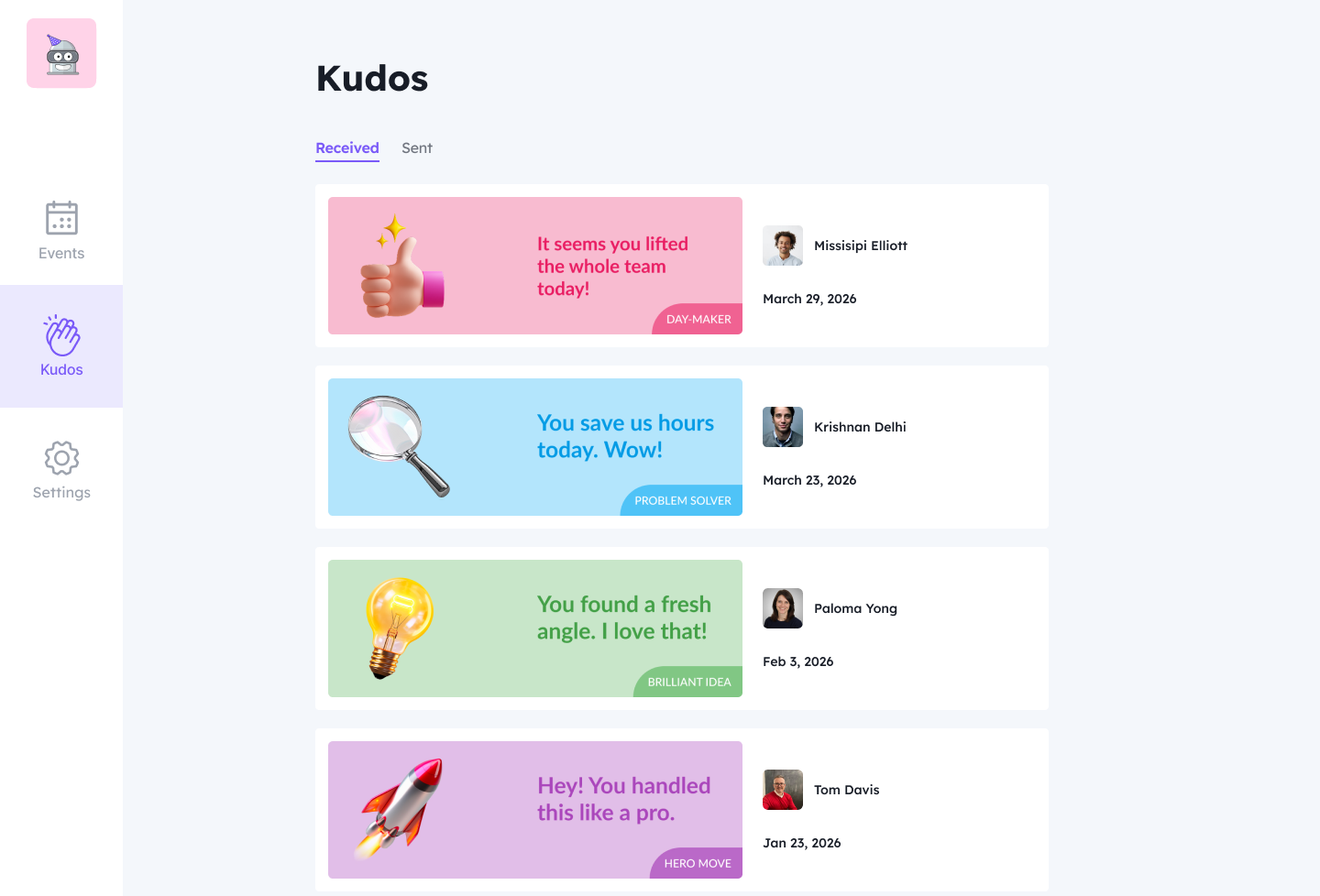 Every kudos you send and receive becomes part of your personal Kudos collection in the BirthdayBot web app!