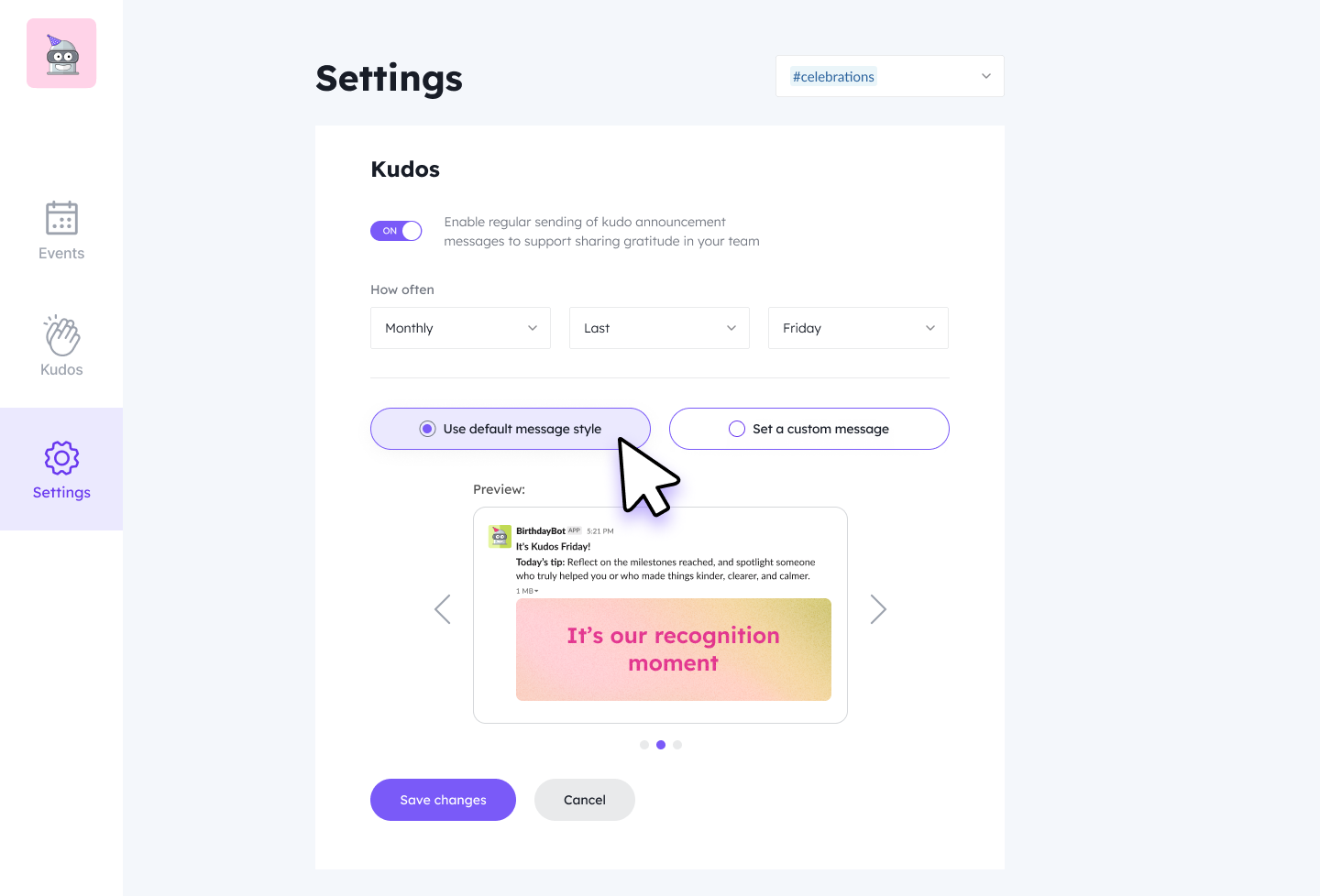 Meet Kudos, a new BirthdayBot feature that helps teams build a simple, feel-good appreciation habit in their Celebration Channels.