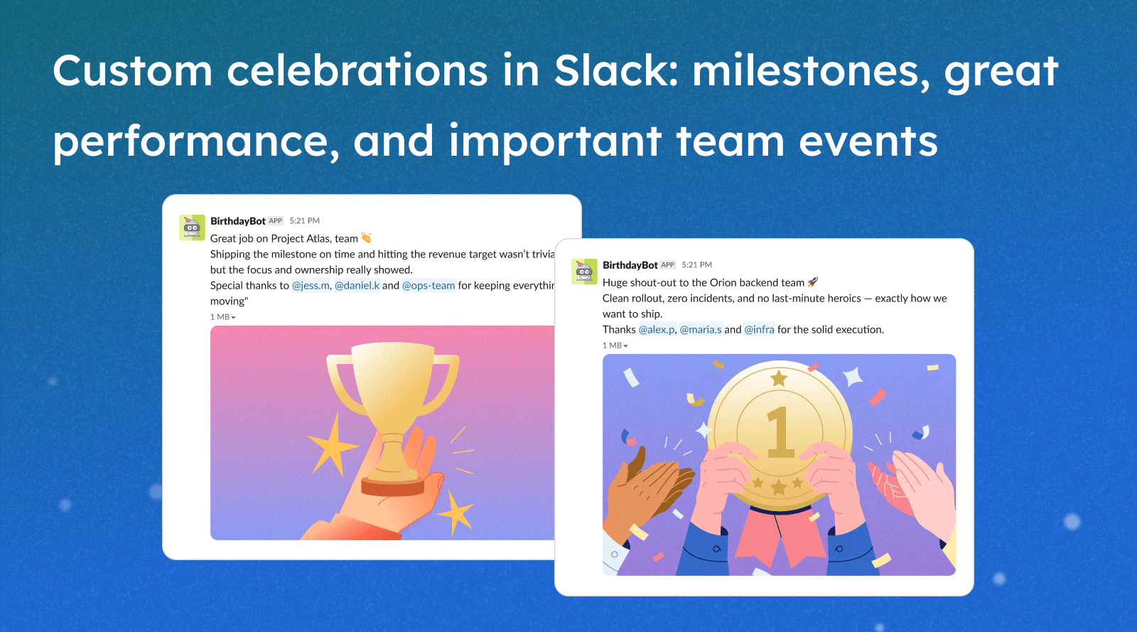 For Slack-first teams, this practice fits naturally into existing workflows. It’s also why the Kudos feature is coming soon to BirthdayBot: to support these moments directly inside Slack without adding process or overhead. Follow BirthdayBot on LinkedIn or X to be the first to know about the Kudo feature release.